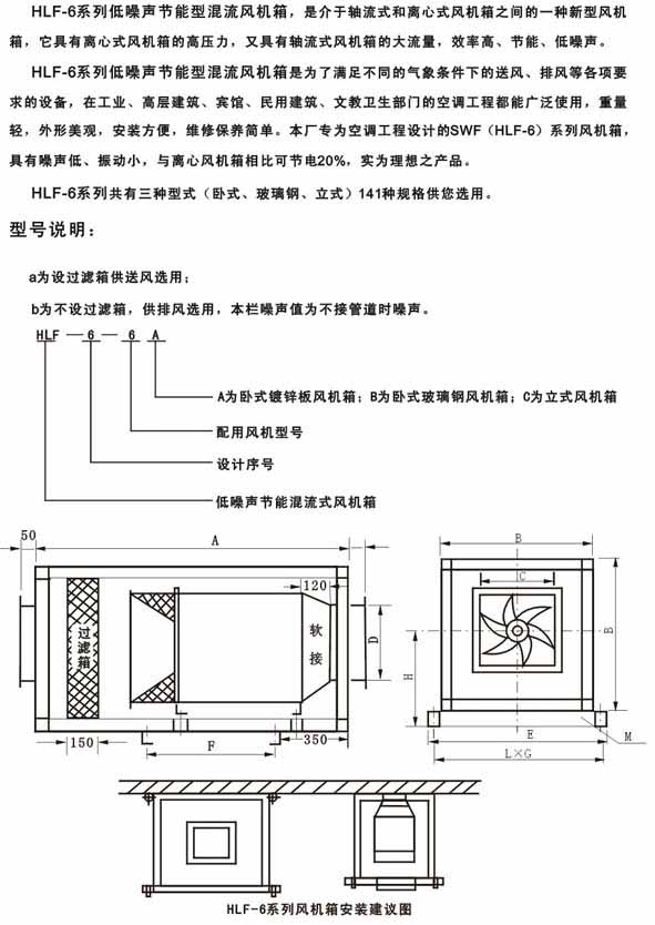 产品名称:HLF-6型低噪声节能混流风机箱