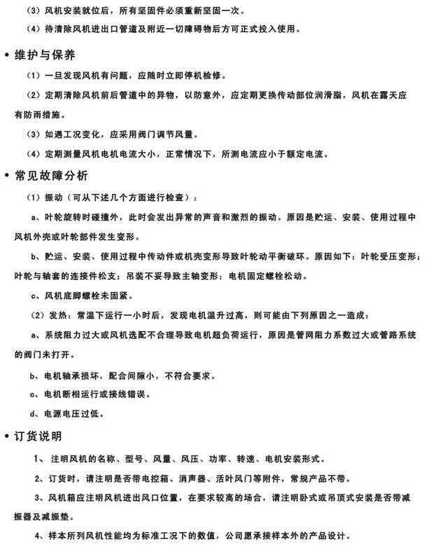产品名称:德赢VWIN上风风机安装、维护及订货说明