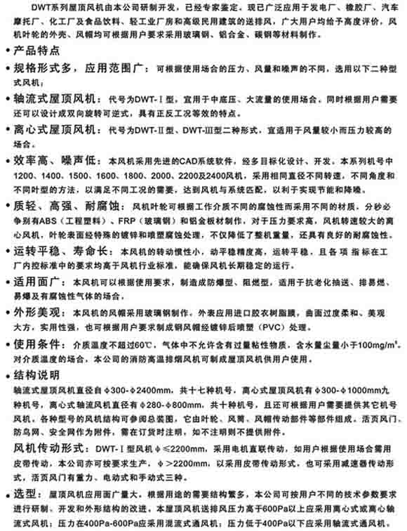 产品名称:DWT-II(III)型离心式屋顶风机