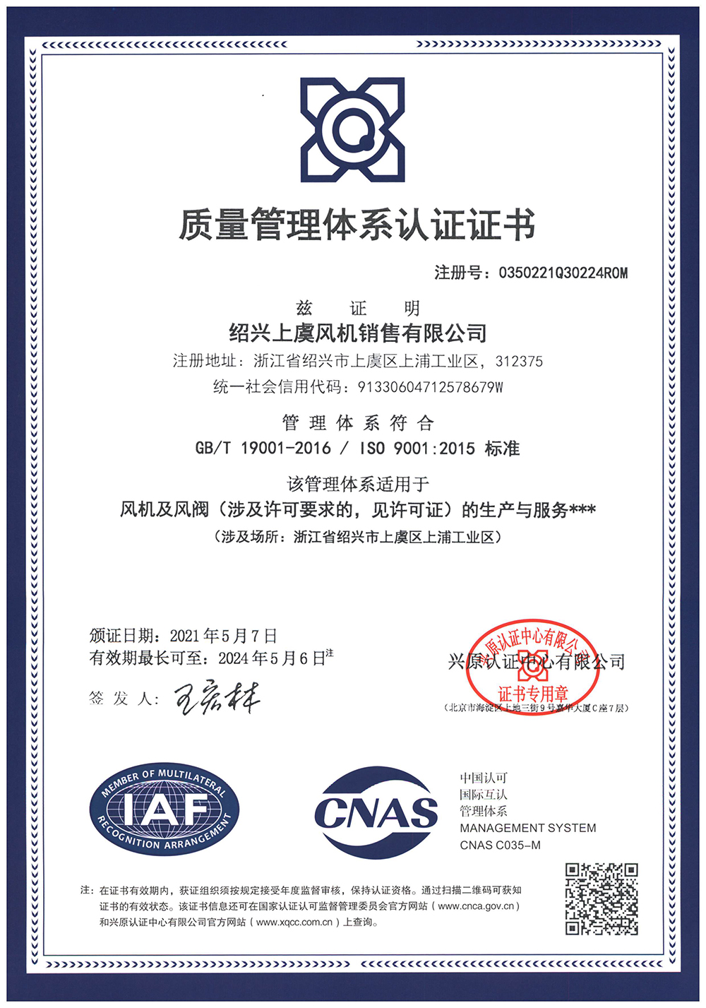 ISO9001:2000质量体系认证·国家消防CCCF认证企业风机专业制造商
